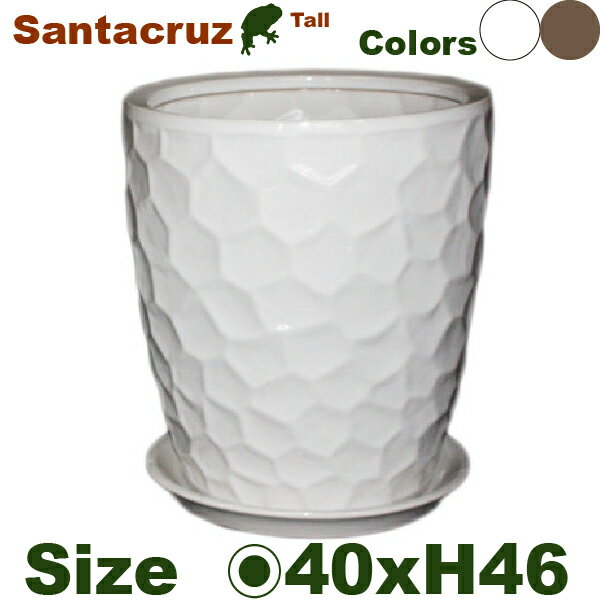 受皿付植木鉢(プランター/ポット) 【外寸】直径40cm×H46cm(内直径34.5cm) 【材質】陶器製 【カラー】ホワイト、ブロンズからお選びください 【底穴】あり(受皿付) ※植物育成用途の耐水性はありますが100%防水ではありません。 ※陶器鉢の若干のムラ、米カケ、ピンホール、釉飛び、歪み、焼ヒビ等は通常品となります。 ※サイズは目安であり多少前後する場合がございます。 ※個人宅、現場宛の場合、別途送料割増となる場合があります。 可能でしたら法人宛にてご注文をご検討下さい。(お届け先に法人名の掲示が必要となります) ※画面上の色はブラウザや設定により、実物は異なる場合があります。ご了承の上ご注文下さい。