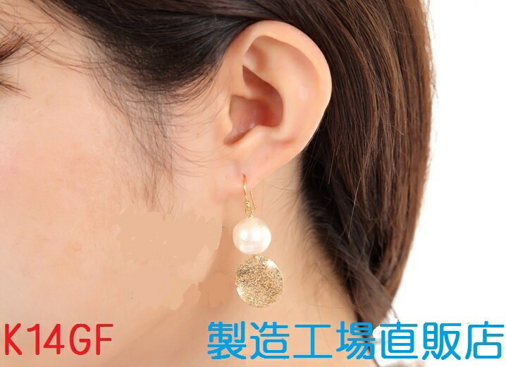 金属アレルギー対応ピアス 14GF ゴールドフィルド サンドブラストムーンフックピアス 工場直販2個で1セット2型 14GF 製造直販 職場用 卒業式 入学式 プレゼント ギフト 日本製 メイドジャパン つけっぱなし シンプル 上品
