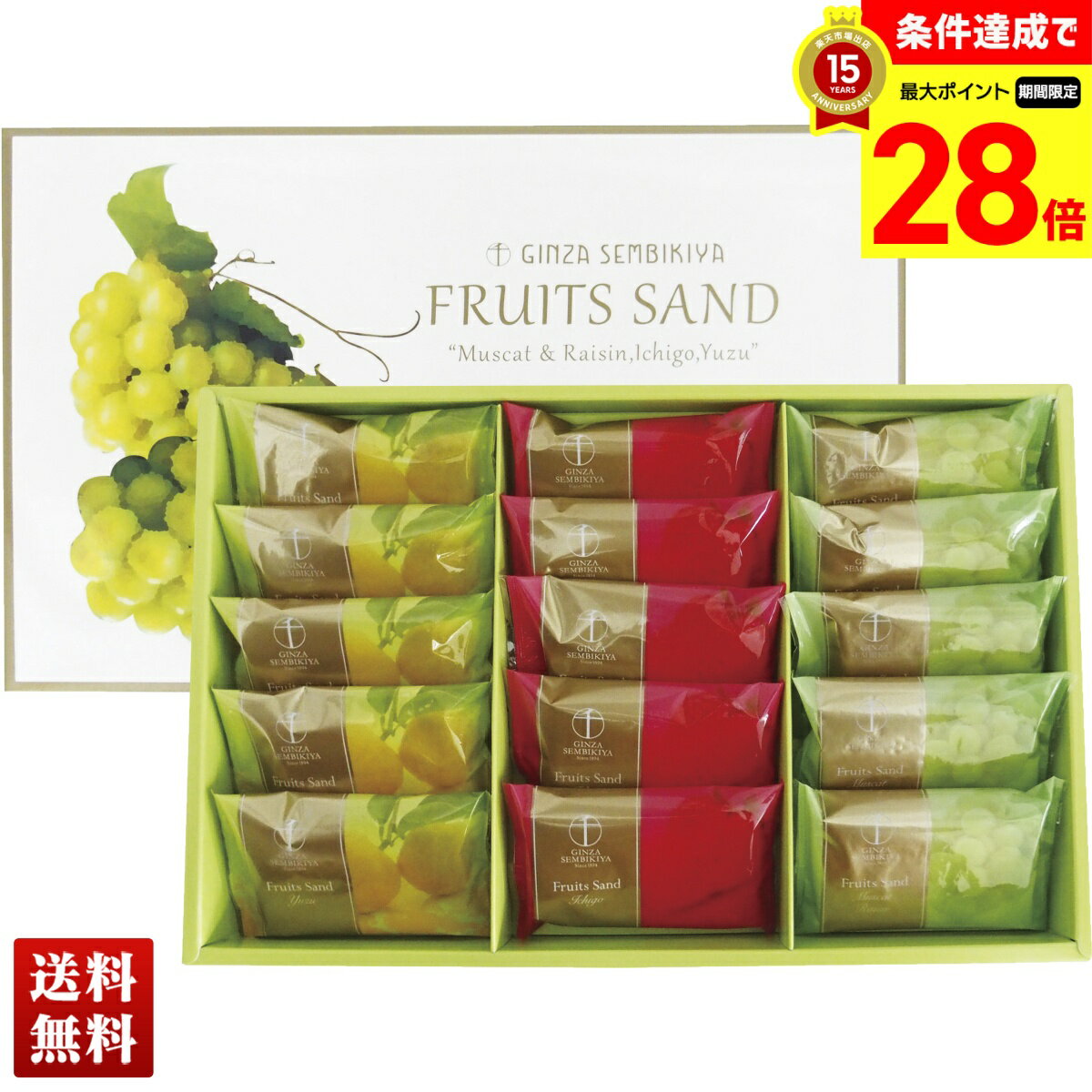 銀座千疋屋 銀座フルーツサンド 15個【送料無料】<熨斗・ラッピング無料! プレゼント ギフト 手土産 引出物 お取り寄せ ブランドスイーツ フルーツ 果物 お菓子 おやつ デザート ギフト マスカットレーズン いちご 柚子 サンドクッキー 個包装 詰合せ セット>