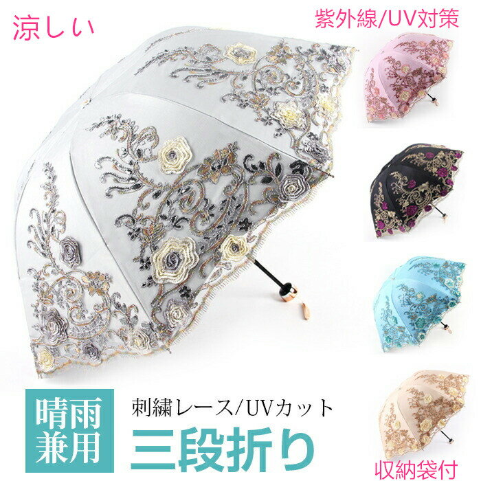 折りたたみ日傘 レディース プリンセス風 レース刺繍 花柄 晴雨兼用 UVカット 遮光 遮熱 おしゃれ サンパラソル ゴスロリ風 貴族風 ロリータ 撮影 結婚式 花嫁 水兵風 3D欧州風 ブラック接着剤 レース二重層 かわいい 折りたたみ傘 収納袋付き