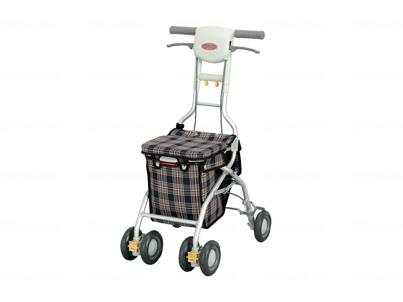 ※当店は介護保険の指定事業者(特定福祉用具販売事業者)ではございません。介護保険でのご購入はできませんので予めご了承ください。※個人宅への発送はできない商品です【商品説明】出来るだけコンパクトで外出時の歩行や買い物の運搬をラクにしたい方に○1回のお買い物分がすっぽり収まるバッグ付○操作が覚えにくかった折りたたみが簡単○キャスター設定3通り(状況に合わせて選択できます)1.固定:直進方向で固定されます傾斜した歩道や砂利道で:ハンドルが取られず歩行できます。2.左右60°・直進:左右に曲がれて直進方向に戻ります舗装された道路で:通常はこの設定をおすすめします。3.左右60°:左右に曲がれますスーパーなど屋内で:小回りが効いて便利です。○ハンドルブレーキ・駐車ストッパー(左右どちらのレバーでも操作できます)1.レバーを引くとブレーキがかかります(坂道で使用します)2.レバーを下げるとタイヤが固定されます(座席に座る時や一時駐車に使用します)○ワンタッチ高さ調節(79・83・87・91cm)○座面耐荷重:80kg○バッグ載荷重1.フロントバッグ:5kg(容量8L)2.リアポケット:0.5kg(容量1L)材質材質座面・バッグ:ポリエステル(裏面:塩化ビニル樹脂コーティング)ハンドルグリップ:エマストラーハンドル・ホイール:ポリプロピレンブレーキレバー・ジョイント・車輪:ナイロンタイヤ:エチレン酢酸ビニル共重合樹脂フレーム:アルミニウム(アルマイト加工)規格詳細商品サイズ・重量:幅40×奥行54×高さ79・83・87・91(cm)・約4.7kg座面高:43cm(折りたたみ時:幅40×奥行28×高さ88〜100cm)【代引きについて】こちらの商品は、代引きでの出荷は受け付けておりません。【送料について】北海道、沖縄、離島は送料を頂きます。