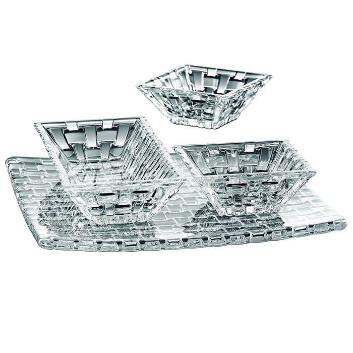 ナハトマン ボサノバ (Nachtmann) 97633 サービングセット(ディップボウルx2+スクエアプレート21cm+レクタンボウル) とってもお得な4個セット! ガラス 皿 ドイツ ギフト・のし可