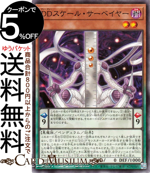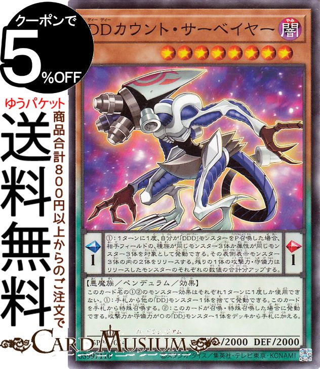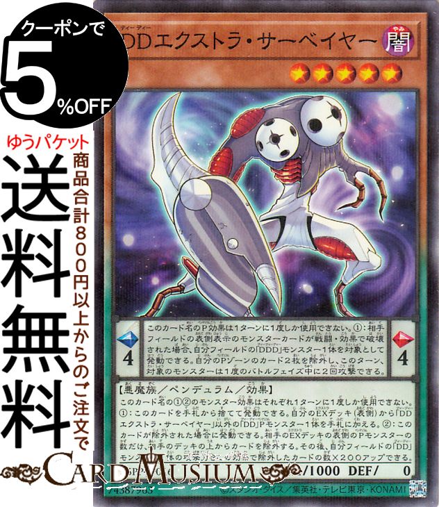 商品説明 収録パック プレミアムパック 言語 日本語 型番 25PP-JP016 レアリティ シークレット 属性 闇 種別 ペンデュラムモンスター 星 5 種族 悪魔 パスワード - 攻撃力 1000 守備力 0 説明 このカード名の(1)(2)のモンスター効果はそれぞれ1ターンに1度しか使用できない。(1):このカードを手札から捨てて発動できる。自分のEXデッキ(表側)から「DDエクストラ・サーベイヤー」以外の「DD」Pモンスター1体を手札に加える。(2):このカードが除外された場合に発動できる。相手のEXデッキの表側のPモンスターの数だけ、相手のデッキの上からカードを除外する。その後、自分フィールドの「DD」モンスター1体の攻撃力をこの効果で除外したカードの数×200アップできる。 備考
