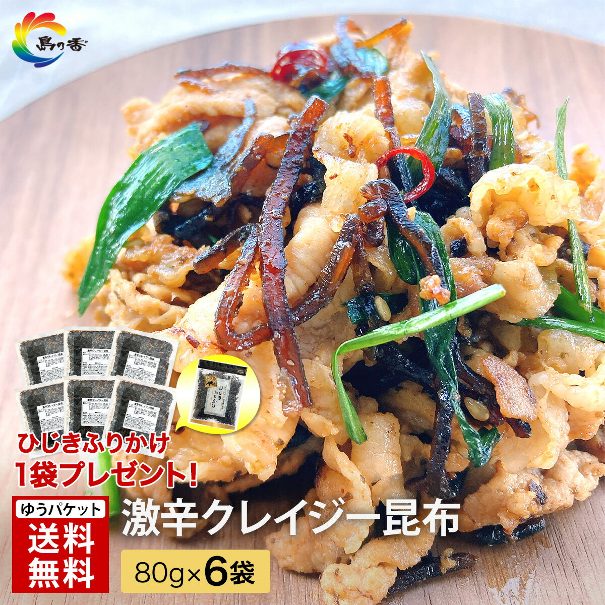 【楽天ショップ・オブ・ザ・マンス受賞】 佃煮 老舗 小豆島 【激辛クレイジー昆布 80g×6袋 ひじきふりかけ1袋プレゼント 】送料無料 つくだ煮 辛くてうまい!