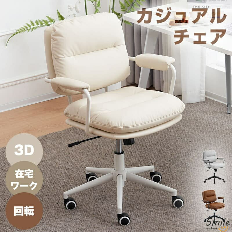 【即納・一年保証】オフィスチェア PUレザ 回転チェア 超肉厚 肘あり 静音キャスター 疲れにくい 2生地 PUレザーぺロア キャスター付きチェア 在宅ワーク おしゃれ 椅子 ダイニングチェア チェア シンプル ワーク 大人 高級感 事務椅子 ワークチェア