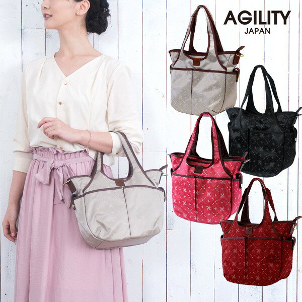 『フルールmini』(全5色)シザークリスタ/【ナイロン トートバッグ a4 横 弱撥水 軽量 ポケット豊富 ショルダー 斜め掛け 肩掛け 2way モノグラム レディース 日本製】【AGILITY Bisogn(アジリティ ビゾン)】(0700-sc)