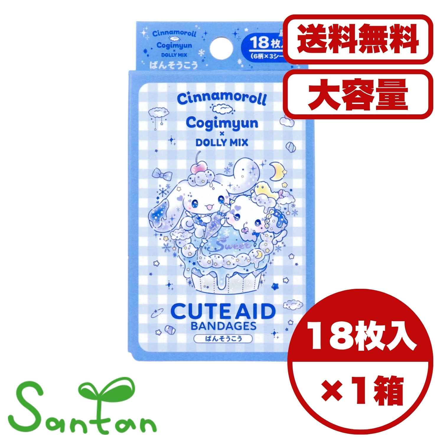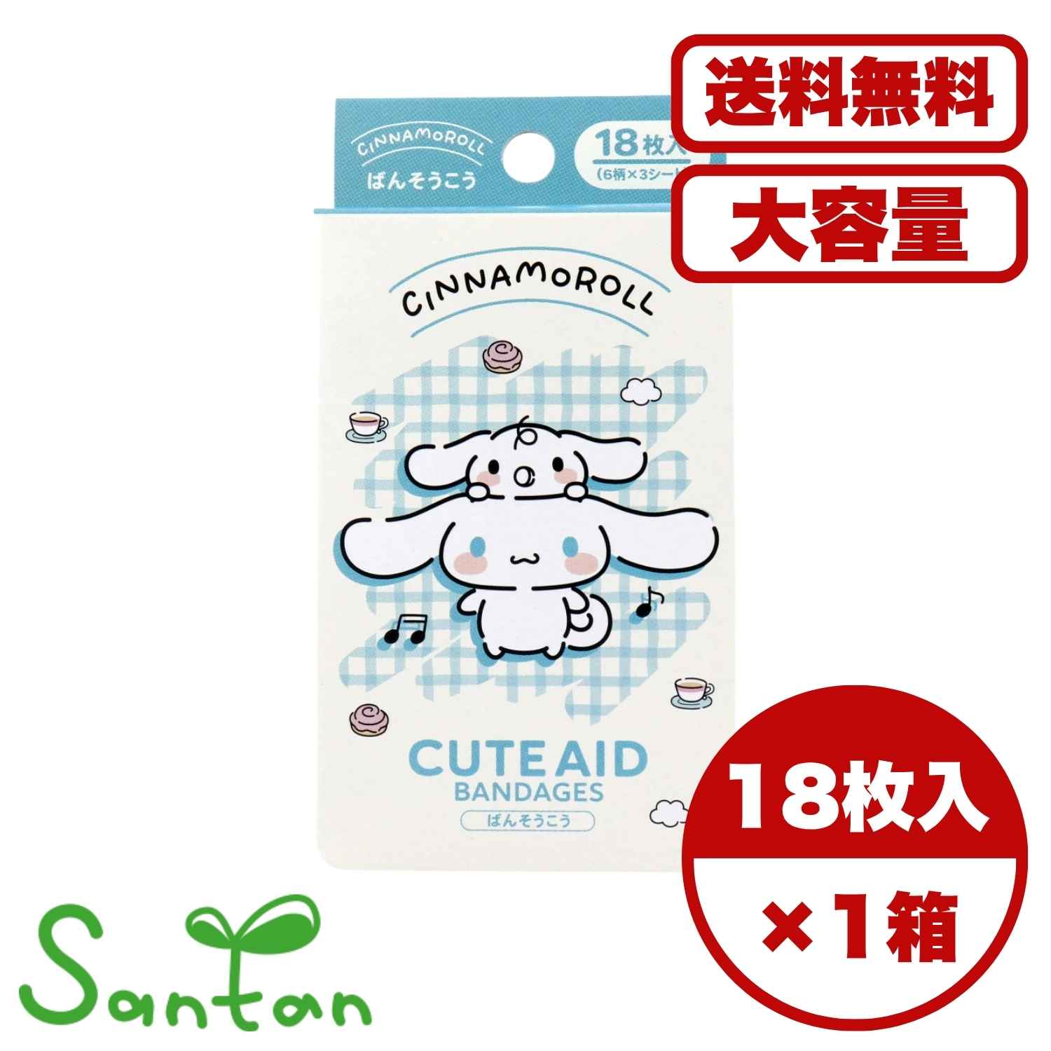 キャラクター救急絆創膏 サンタン CUTEAID シナモロール 6デザインX3シート 18枚入り X6箱