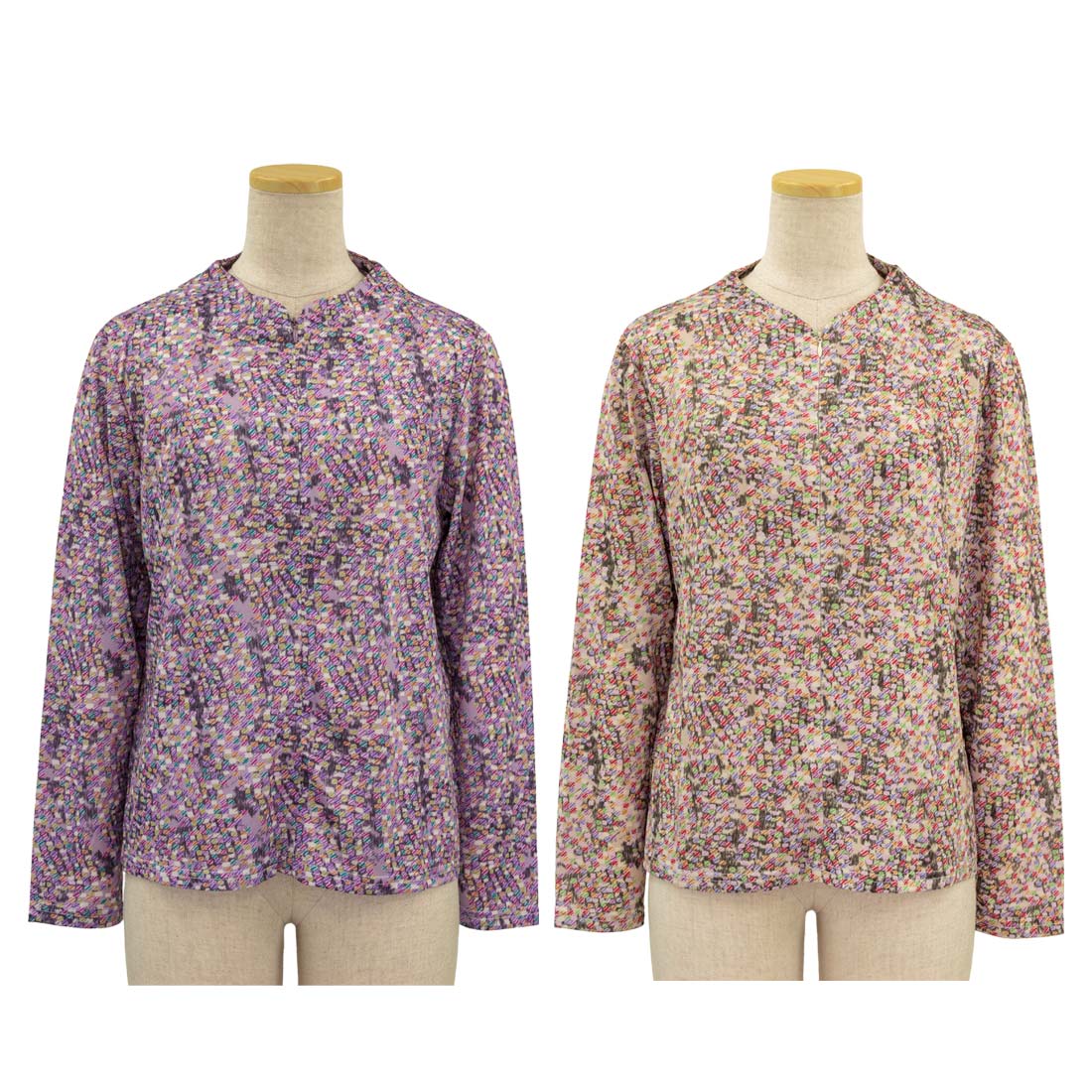 ロングファスナー 薄地ニット プリント Tブラウス ストレッチ カットソー シニアファッション 秋冬 婦人 レディース トップス 敬老の日 ギフト シニア 高齢者 70代 80代 90代 老人 高齢者 介護向け 施設 介護 おばあちゃん お年寄り 母の日