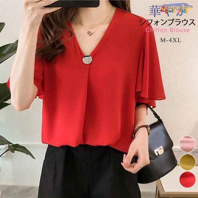 ブラウス トップス レディース シフォン 半袖 インナー Tシャツ オフィス カットソー シャツ カジュアル ビジネス 大きいサイズ 体型カバー おしゃれ きれいめ
