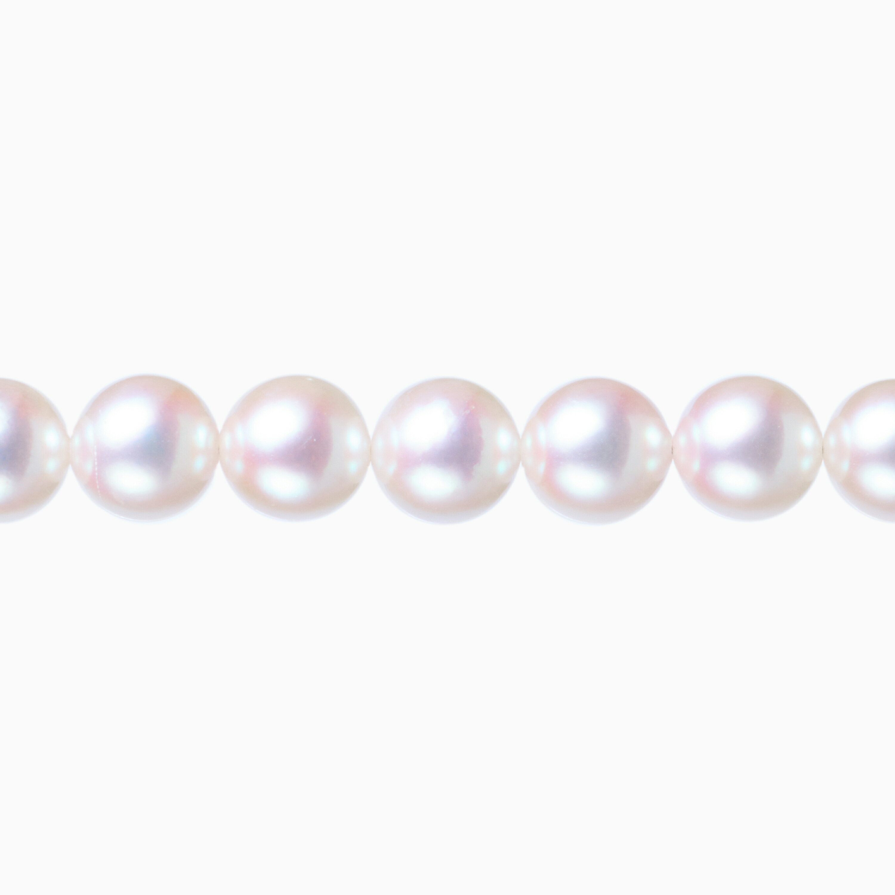 こちらのお品物は、日本の伝統美をコンセプトに新開発を行ったプラチナ製クラスプにアコヤ真珠の最大級サイズにして、最高評価の美しさを持つ越物アコヤ真珠9-9.5mmを使用し製作を行った限定商品です。 これまでプラチナは素材の強度の問題から、真珠用クラスプとしての実用化が難しいとされてきました。しかし、当社では試作と改良を重ね、プラチナの素材強度そのものを高める新技術によって、ついにこのクラスプの開発に成功いたしました。 デザインには、日本建築の伝統文様「組子(くみこ)」を採用。 100年以上の歴史をもつアコヤ真珠の伝統と、日本の職人が育んできた美の象徴をひとつに結びました。さらにクラスプの内側には、真珠の干渉色をより引き立てる白蝶貝を丁寧にセッティング。光が当たるたびに、アコヤ真珠と白蝶貝の互いの干渉色が引き出し合うように輝きます。日常の装いでは、あえてクラスプを鎖骨の位置に見せてお召しいただくのもおすすめです。 静かな存在感の中に確かな個性が宿り、従来の冠婚葬祭用ネックレスとは一線を画す、格式とモダンを併せ持つ装いをお楽しみいただけます。 そして使用したアコヤ真珠には、多少のキズ感よりも最高評価の美しさと最大級サイズが合わさった希少な越物アコヤ本真珠9-9.5mmとなっております。テリ評価では100点満点の完璧な光沢感、珠の内部にはピンク、グリーンの鮮やかな干渉色が挿し、最高評価の表面色評価である純白ホワイト系と合わさることにより、他の真珠種類には見られない、最高評価のアコヤ真珠ならではの金属的な光沢をご実感いただけます。キズ評価では10段階中上位3.5番目となっておりますように、手に取りご覧いただくような至近距離では小さなキズ感が散見しますが、ご着用時には周りの方から見えない絶妙なキズ感となっております。 伝統と革新が出会い、新しい「日本の美」が生まれたこの一本は、まさにその象徴と呼べる逸品です。 サイズ:9-9.5mm 色:純白ホワイト系ピンクグリーン 形:ラウンド系 クラスプ:PT900 *楽天市場のシステムの都合上、有料オプションをお選び頂いた場合に料金はカート内で自動計算されません。そのためご注文完了後、弊社にてご注文内容の修正を行いご連絡をさせて頂きます。