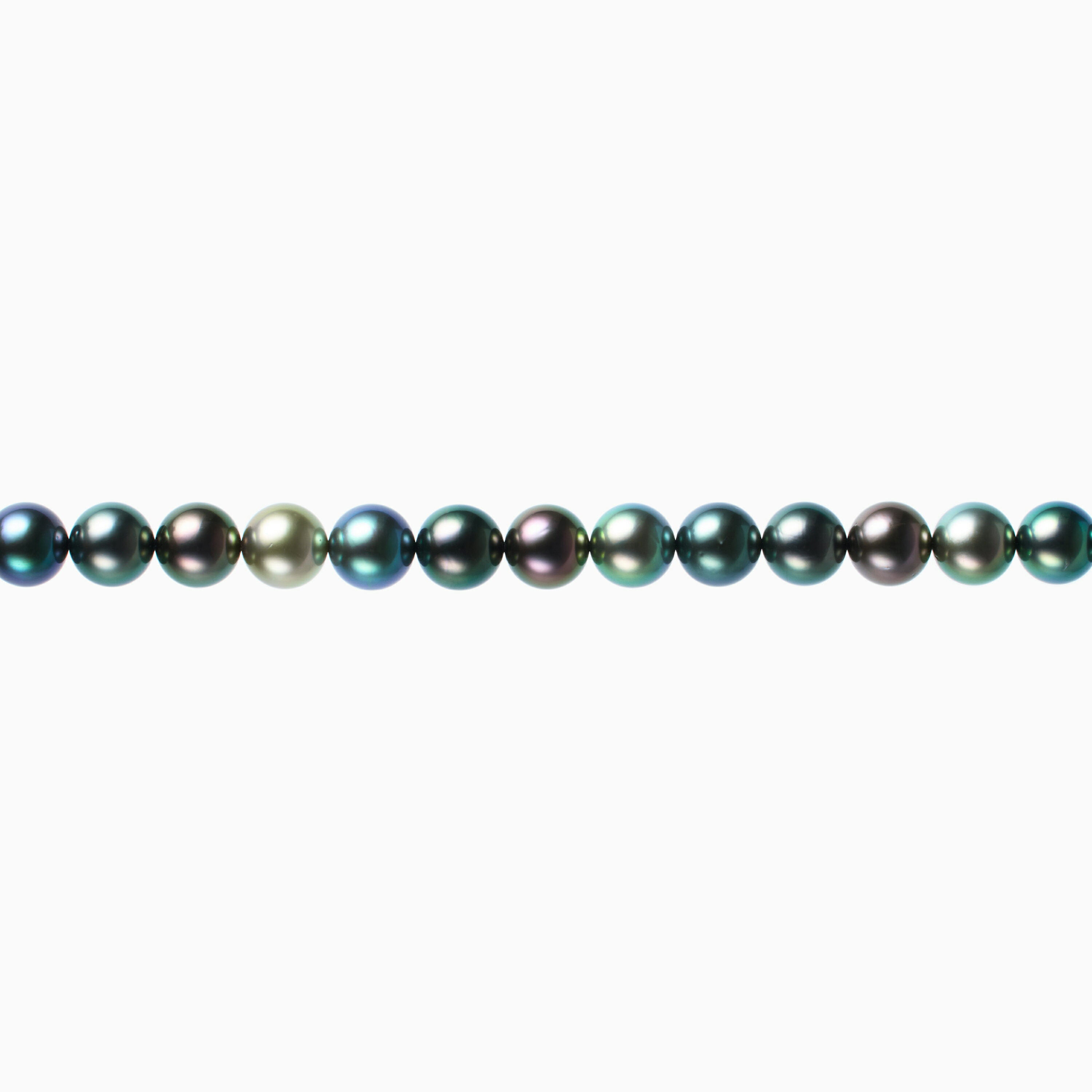 こちらは、当社が展開するGENERAL PEARLエクスクルーシブコレクションの中でも、最高評価の光沢と色彩を兼ね備えた、特別なプレミアムピーコックマルチカラーネックレスでございます。 使用している黒蝶真珠は、すべてが10mm台で揃えられたストレートサイズとなっており、ひと珠ごとに異なる表情を持つ珠たちが、隣り合うことで互いの美しさを引き立て合うような印象をお楽しみいただけます。色調は、タヒチ・リキテアで生まれた珠の中でも、特に希少とされるプレミアムピーコックレアカラーのみを厳選。様々な干渉色が織りなす複雑な発色は、プレミアムピーコックならではの神秘的な魅力を余すところなく表現しています。 また、テリ評価は100点満点中100点満点の最高評価の光沢感、そしてレアカラーとしての鮮やかさを持ち合わせております。光の干渉現象を最大限に引き出し、様々な装いにお召しいただくことで、見るたびに新しい発見をもたらします。キズ評価においても、10段階中上位1.5番目という非常に優れた評価となっており、目立つキズのない艶やかな真珠肌に仕上がっております。 そしてこちらに使用しているクラスプには、タヒチにて幸福の象徴ともされる4枚花弁の「プルメリア」をモチーフにした、ハイジュエリー仕様のデザインを採用しました。ダイヤモンドを0.65ct贅沢にセッティングした華やかな表面と、裏面には艶消し仕上げのPT900を使用したリバーシブル仕様となっており、シーンに応じて表情を変えてご着用いただけます。鎖骨付近にクラスプを見せる着け方で、ハイジュエリーとしての存在感をお楽しみいただくことも可能です。 タヒチ・リキテアの美しいラグーンに育まれた、唯一無二の色彩美を感じさせる一本。特別な日のお召し物に、またご自身のこだわりを表現する一本として、心よりおすすめ申し上げます。 長さ:約43cm サイズ:10-10.9mm 色:マルチカラー系プレミアムピーコック 形:ラウンド系 クラスプ:PT900 *楽天市場のシステムの都合上、有料オプションをお選び頂いた場合に料金はカート内で自動計算されません。そのためご注文完了後、弊社にてご注文内容の修正を行いご連絡をさせて頂きます。