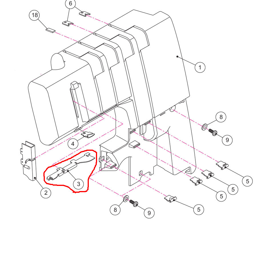 ベビーロック エクシムロック(Excim Lock)ES4D用糸道ガイドBです。 掲載している部品表の「3」(赤印)の部品になります。 品番:G1166A その他のベビーロック(ジューキ)関係の部品・消耗品は下記のアドレスに掲載しています。 https://item.rakuten.co.jp/andomishin/c/0000000283/