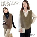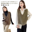 シャギー グリーン ニットトップス フェザー レディース ふわふわ レイヤード 毛足長め モヘア プルオーバー シャギーニット 伸縮性 フェイクファー 可愛い グレー ブラウン ブラック Vネックフェザーシャギーニットベスト