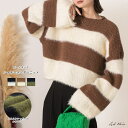 起毛シャギーボーダーニットトップス レディース 秋 冬 リエディ / トップス ニット セーター ニットトップス ニットプルオーバー ボーダー ワイドボーダー シャギー シャギーニット プルオーバー オーバーサイズ ゆったり