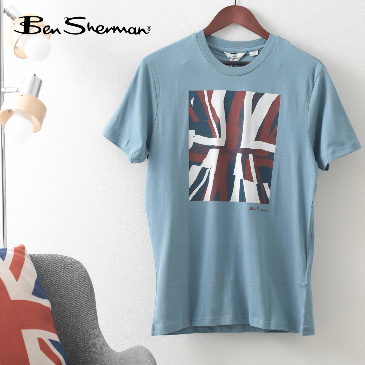 Ben Sherman ベンシャーマン メンズ Tシャツ ユニオンジャックプリント フラッグ ペールブルー オーガニックコットン レギュラーフィット ギフト トラッド