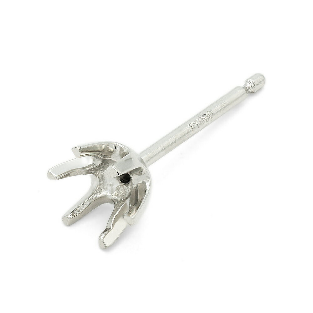 【1個売り】 ピアスパーツ PT900 プラチナ スタッドピアスパーツ 窓あき4本爪付き 3分石用 軸径0.90mm ピアスポスト ピアス軸 石枠 空枠 石座 台座 シャトン|手芸用品 金具 飾り パーツ 部品 900pt 貴金属