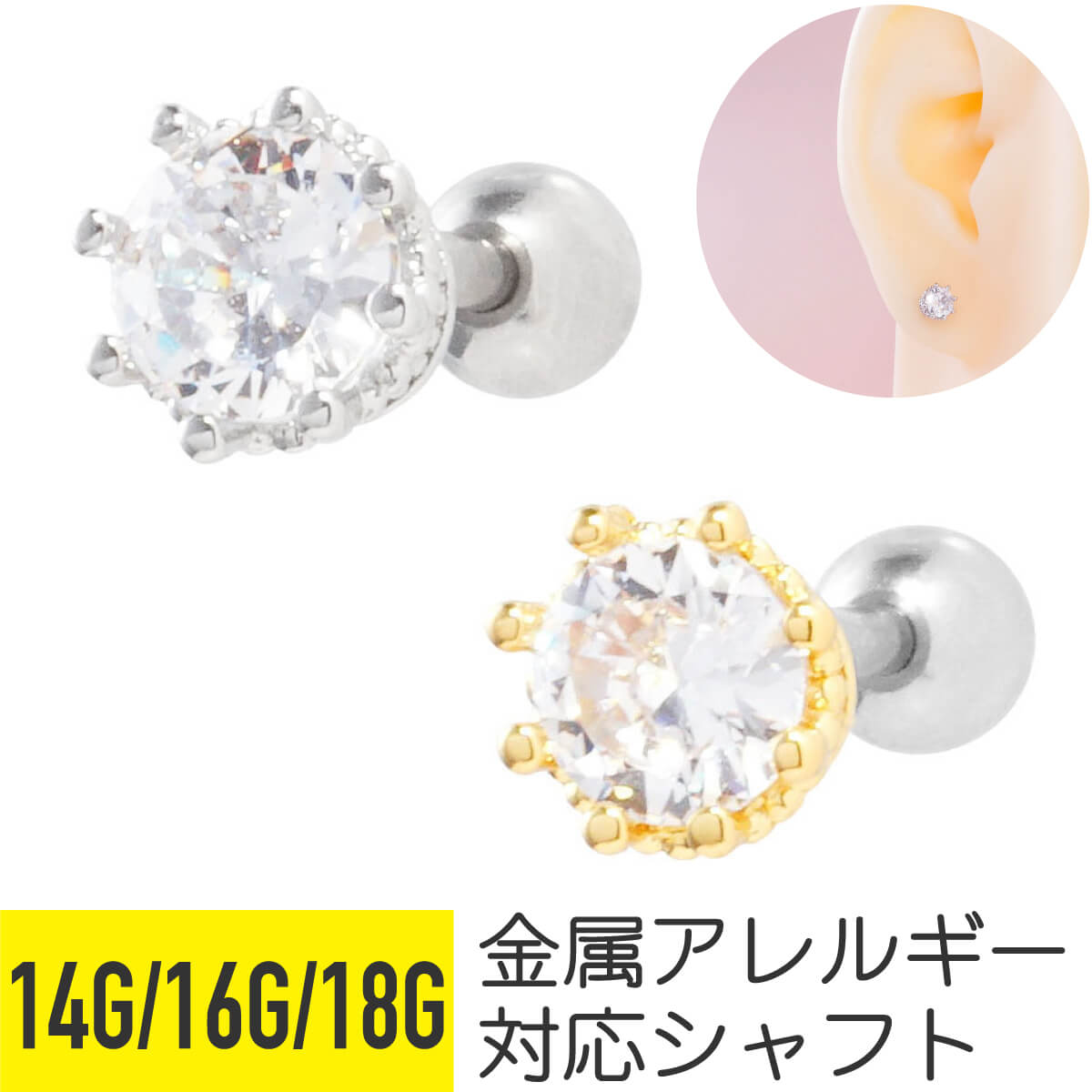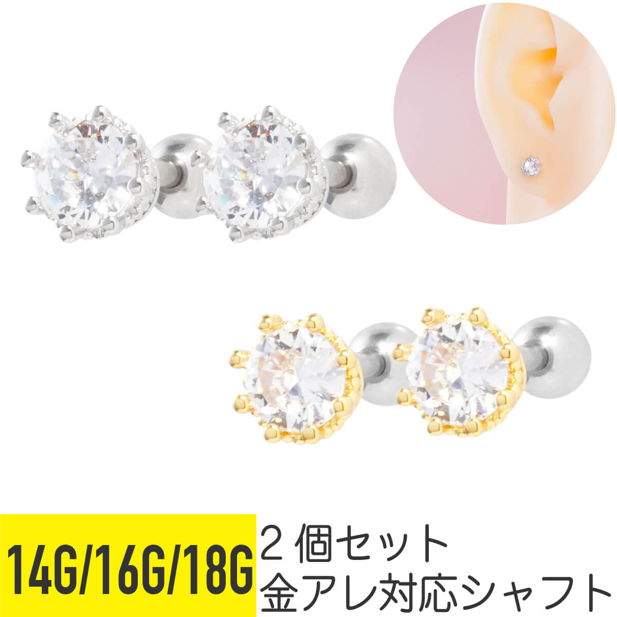 2個セット クラウン ベゼル ジュエル ストレートバーベル 14G 16G 18G サージカルステンレス ジルコニア ヘリックス アウターコンク 軟骨ピアス ボディピアス 王冠 シャトン クリア ストーン キラキラ メンズ レディース 金属アレルギー対応