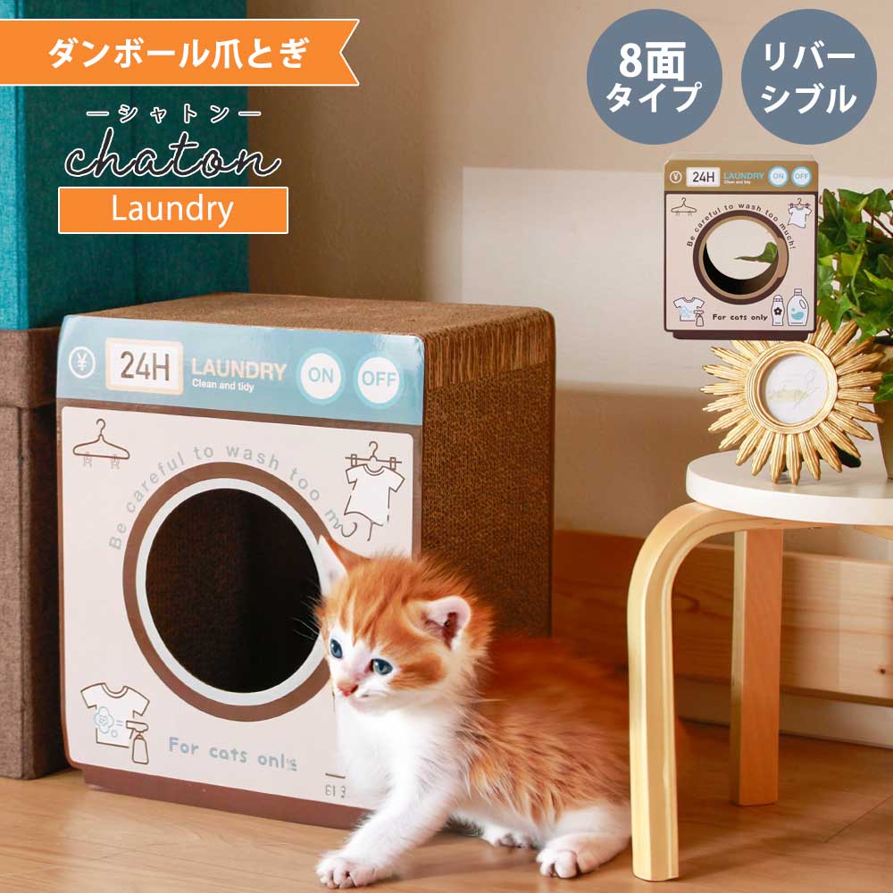猫 爪研ぎ 段ボール ダンボール インテリア おしゃれ 8面 【送料無料】 シャトン 洗濯機 ランドリー ブルー ブラウン リバーシブル キャット 爪のお手入れ プレゼント