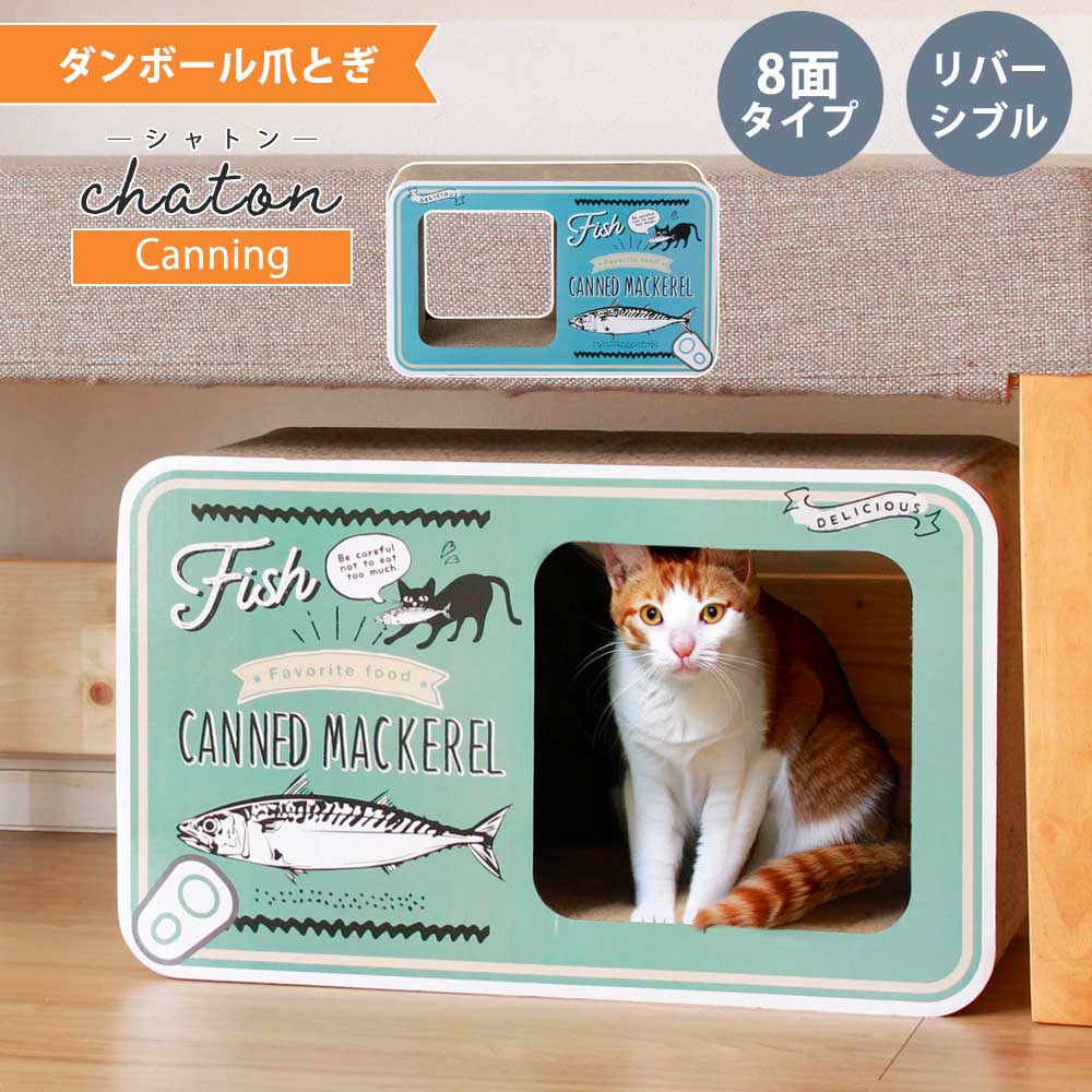 ネコ 爪研ぎ 段ボール 猫 爪とぎ しつけ おしゃれ インテリア 缶詰 【送料無料】 シャトン 8面 リバーシブル ブルー グリーン カワイイ