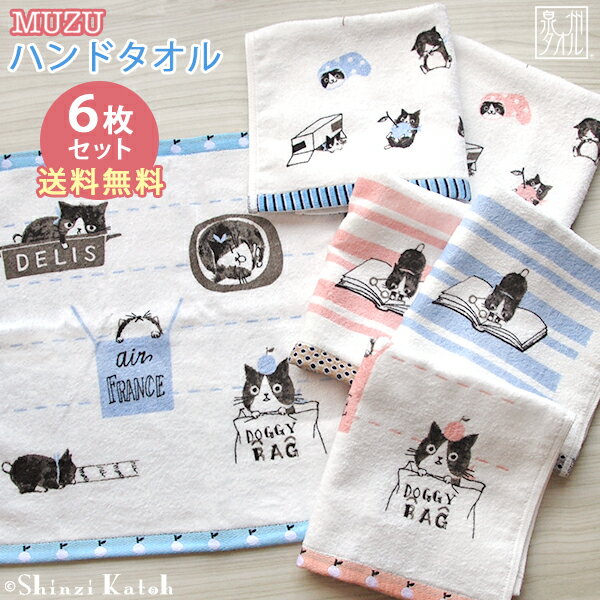 【6枚セット 送料無料】『MUZU(ムズ)』 ハンドタオル 約34×36cm ゲストタオル シャーリング まとめ買い シャトン 猫 ねこ ネコ ハチワレ グッズ キャット 猫好き 【アウトレット価格:SK】 【クーポン配布中】