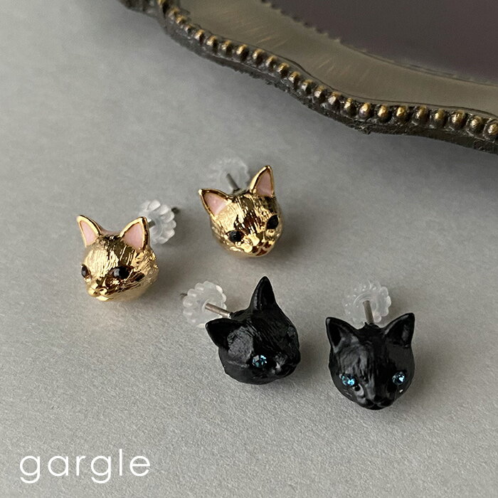 ピアス 猫 ネコ ねこ gargle ガーグル シャトン アニマル 動物 顔 フェイス 黒 ブラック ゴールド 直ポスト スタッド マット おしゃれ かわいい 個性的 プレゼント ギフト