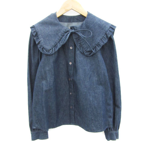 【中古】シャルル シャトン Charles Chaton デニムシャツ ブラウス セーラーカラー リボン ネイビー 紺 /YM7 レディース 【ベクトル 古着】 250326