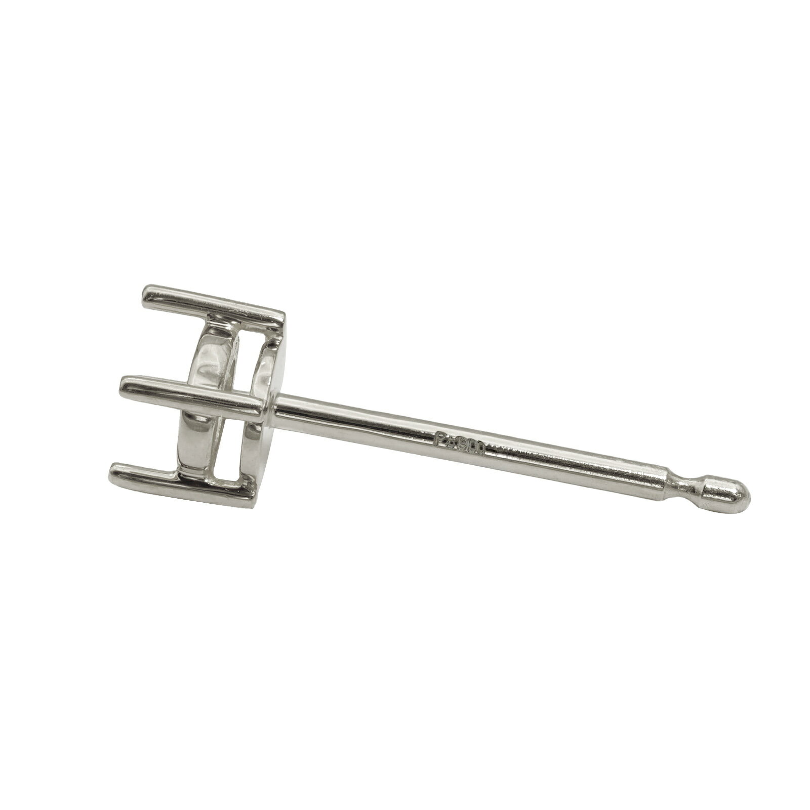 【1個売り】 ピアスパーツ PT900 プラチナ スタッドピアスパーツ 窓あき4本爪付き 3分石用 軸径0.90mm ピアスポスト ピアス軸 石枠 空枠 石座 台座 シャトン|手芸用品 金具 飾り パーツ 部品 900pt 貴金属