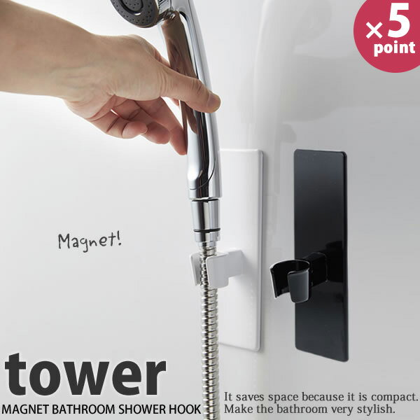 【365日出荷中】[ マグネットバスルームシャワーフック タワー ] 山崎実業 tower バス用品 ホワイト/ブラック バスルーム収納 シャワーホルダー 浴室収納 磁石 シャワーヘッド フック おしゃれ 3805 3806 タワーシリーズ マグネット yamazaki JGS 最強配送 送料無料