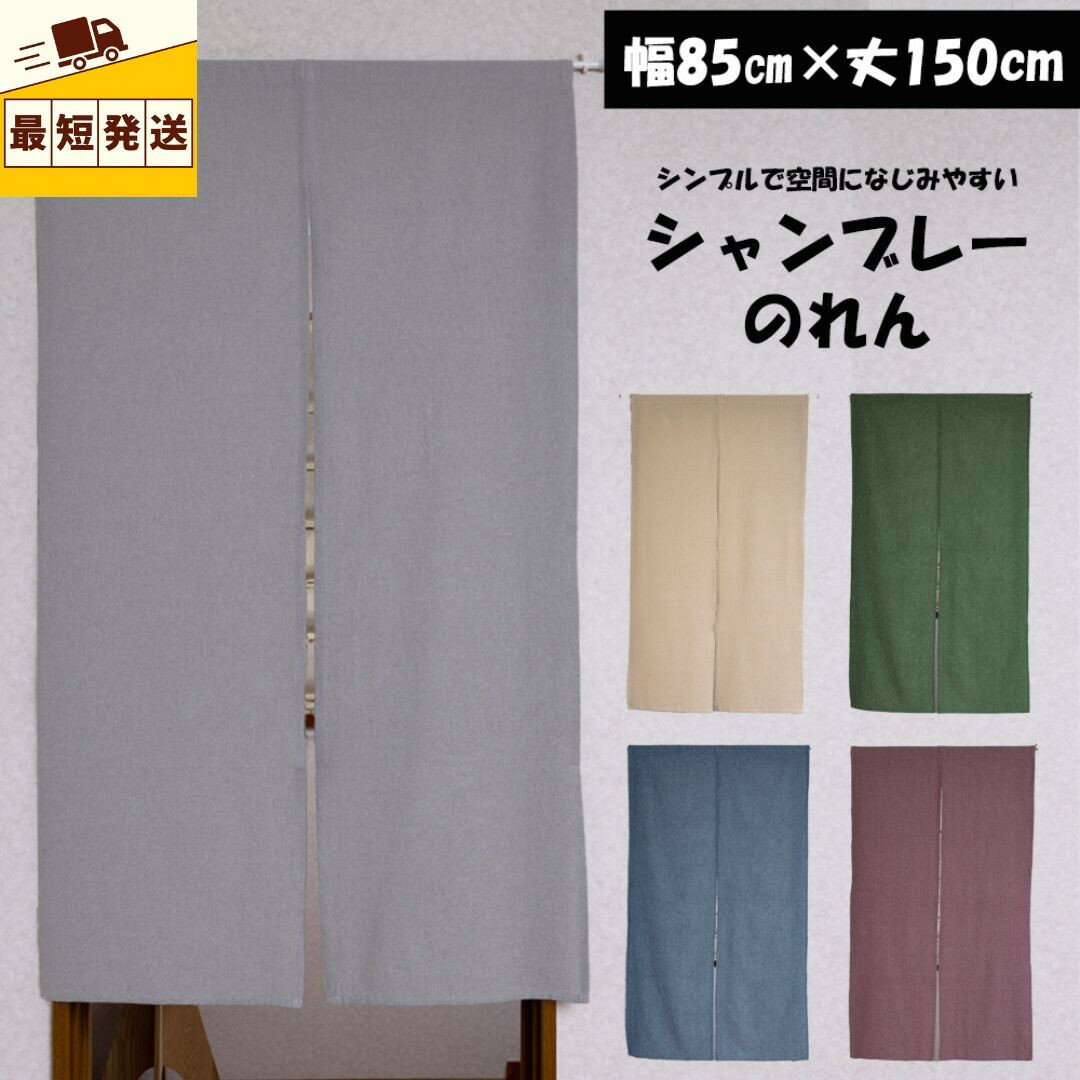 【4000円OFFクーポン配布】のれん シャンブレー 無地 5色 メール便 送料無料 横幅85cm 丈150cm 間仕切り おしゃれ シンプル 突っ張り棒 ポール通し ベージュ グリーン グレー レッド ブルー
