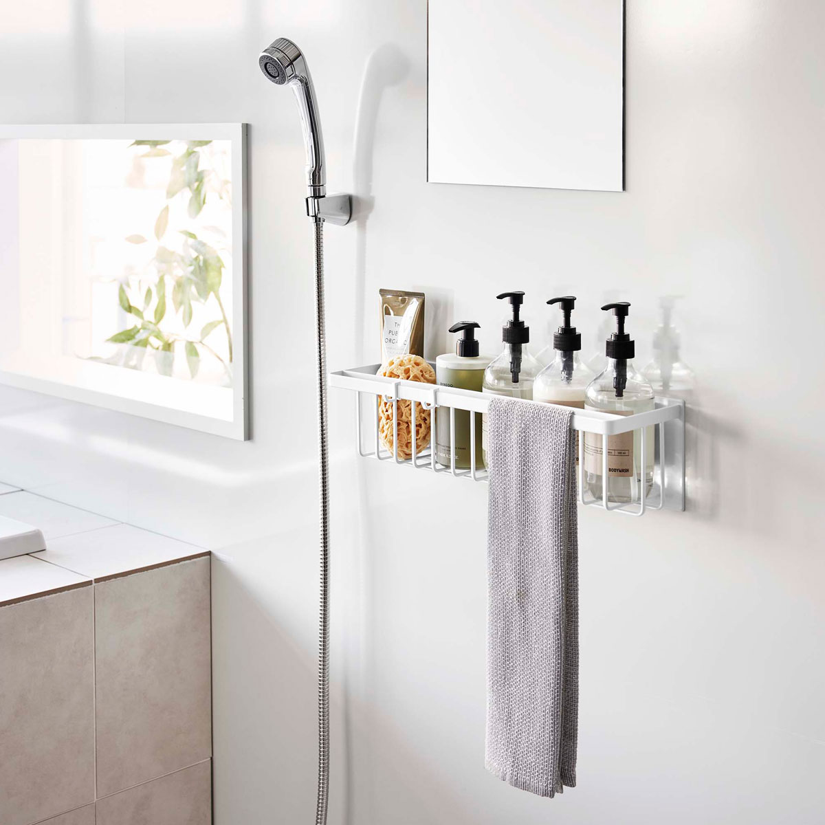 バスラック 山崎実業 正規品 tower タワー マグネットバスルームバスケット ワイド 清潔!水切れ良くお手入れ簡単! マグネット収納 壁面収納 シャンプーラック 浴室用ラック 浴室収納 ホワイト