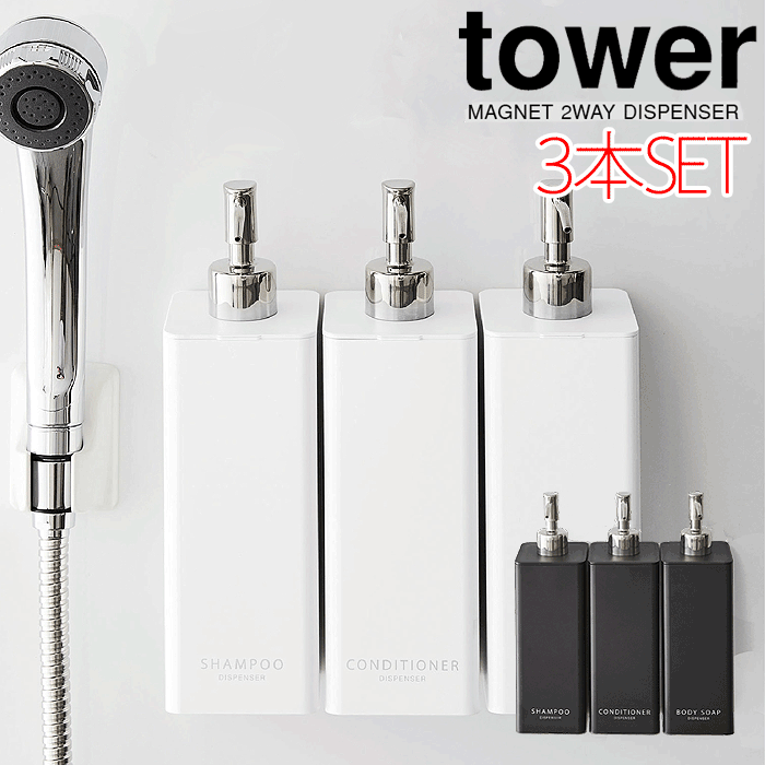 \レビューで1000円クーポン!/ 【ポイント5倍】山崎実業 マグネット ツーウェイ ディスペンサー 同色 3本セット tower タワー 2WAY 詰め替え ボトル シャンプー コンディショナー ボディーソープ 各1本セット バス 液体 容器 おしゃれ YAMAZAKI