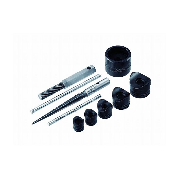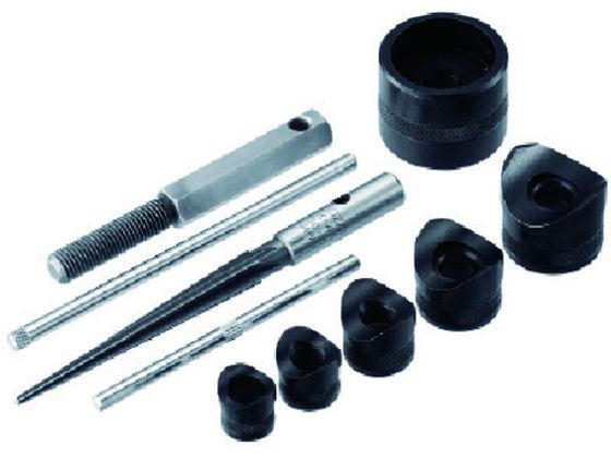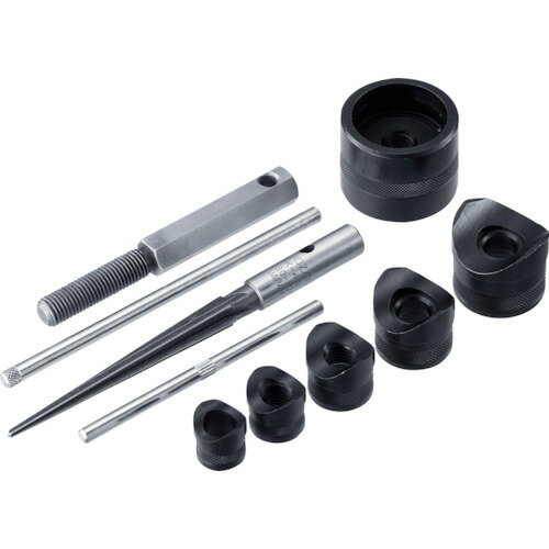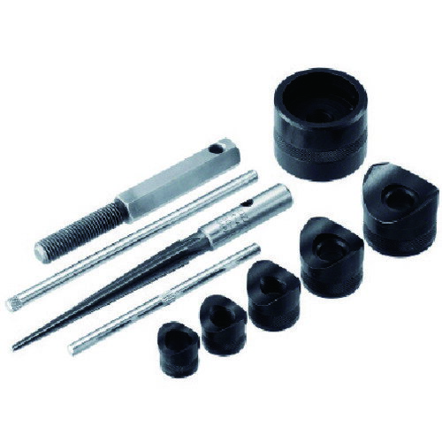 【特長】■片手で楽に穴あけが可能です。■3mm程度の穴があれば、手軽により大きなサイズに穴あけ加工ができます。【用途】■鉄板、アルミ板への大口径穴開け加工。【仕様】■穴あけ能力:アルミ板/板厚1.8mm以下、鉄板/板厚0.8mm以下■セット内容:カッター(16、18、21、25、30mm)、ウス、センターボルト、テーパリーマ(K-441)【セット内容】■カッター(16、18、21、25、30mm)、ウス、センターボルト、テーパリーマ