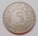 ドイツ 1958 F シルバー 5 マーク VF-XF * レア 連邦キー シュツットガルト造幣局 イーグルコイン