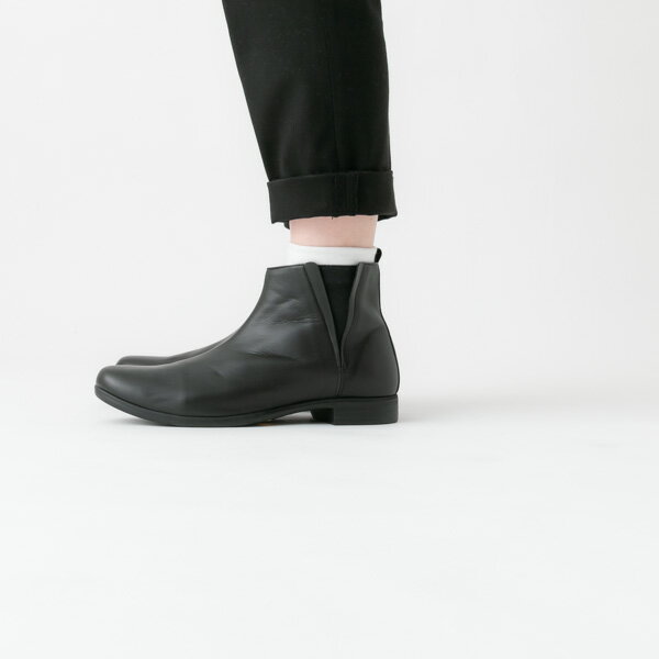 メーカー希望小売価格はメーカー商品タグに基づいて掲載しています 商品カテゴリー【ブラック】【ブラウン】 【23.0cm】【23.5cm】【24.0cm】【24.5cm】【25.0cm】TRAVEL SHOES by chausser(トラベルシューズバイショセ)サイドゴアショートブーツtr-023 TRAVEL SHOES by chausser(トラベルシューズバイショセ) ショセのデザイナーである前田洋一氏が新たに手掛ける、旅をテーマとしたシューズブランド。自らの経験をもとに、軽さや防水性などの旅先に適した機能と、旅先でも引き立つモードな外観を追及したレザーシューズを提案します。 TRAVEL SHOES by chausser 一覧はこちら 品格漂う、端正なシルエット。 TRAVEL SHOES by chausser(トラベルシューズバイショセ)よりサイドゴア ショート ブーツのご紹介です。足元をすっきりと見せる、美脚効果も抜群なショートブーツ。程よくシャープにデザインされたトゥが足元から端正な雰囲気に。サイドゴアにより、脱ぎ履きしやすく、シンプルなデザインがカジュアルやキレイに合わせやすい汎用性の高いアイテムです。スカートにもパンツにも、どんなスタイルにもかっちりハマり、流行に左右されない普遍的なデザインなので長く愛用頂けます。 正面から見ても横から見ても、程よいシャープ感が端正な雰囲気を醸し出してくれるショートブーツ。程よく高さのあるヒールで美脚効果も抜群。 スカートにもパンツにも、どんなスタイルにもかっちりハマる。流行に左右されない普遍的なデザインなので長く愛用頂けます。 コーディネート トップス / スカート / バッグ / 伸縮性のあるサイドゴアだから、脱ぎ履きするときにとてもスムーズ。サイドジップがなくても簡単に履けてブーツの煩わしさがありません。筒口のプルストラップは摘まみやすく、履くときに便利。 グリップ性の高いVibram社の特殊ラバーソール。 イタリアVibram社のグリップ性の高いラバーソールを使用し、安定感のある歩行をサポートします。旅をテーマにしたブランドならではの、靴底は世界地図という遊び心のあるデザインです。インソールにもクッション性があり、歩行時の耐圧をゆっくりと包み込み衝撃を軽減してくれます。 ソックスで差し色を入れたスタイルもいいですね。 size: ヒール/約4.5cm 幅/約9cm 高さ/約15.5cm 筒周り/約24cm 足首周り/約27cm country: 日本製 fabric: アッパー/天然皮革 ソール/ラバー(Vibram社) weight: 約316g(サイズ38計測) 注意事項: お手入れ方法については、必ず事前にお問い合わせください。 STAFF VOICE ▼model:mizuki 身長:168cm/体重:50kg/靴のサイズ:24cm 着用サイズ:38 普通の靴下を履いてサイズ38(24.0cm)を着用しました。サイズ感は全体的にジャストサイズでした。甲や横幅に窮屈感はなかったですが、厚みのある靴下やタイツを着用する機会が多い方はワンサイズ大きいサイズでもいいかもしれません。薄手の靴下やタイツを着用する機会が多い方はこのサイズでいいと思います。ヒールはそこまで高くなく、クッション性があるので履き心地は良かったです。 → モデルサイズ詳細へ