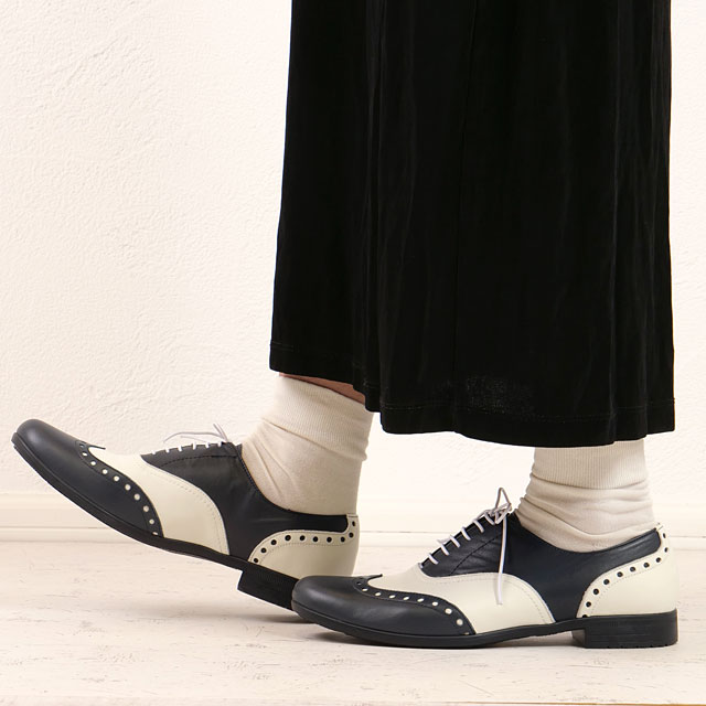 返品送料無料 ショセ トラベルシューズ TRAVEL SHOES by chausser トラベル シューズ バイ ショセ ウィングチップ レースアップシューズ [TR-004 FW25] Wing tip shoes レディース 靴 日本製 防水 ビブラム ネイビーガラス/ホワイトコンビ NV/WHC 正規取扱店