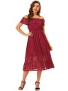 Allegra K オフショルダー フリル ワンピース ドレス ハイウエスト 半袖 レディース ブルゴーニュ S