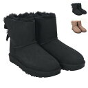 〈P5倍〉アグ/UGG "Mini Bailey Bow II/ミニ ベイリーボウ2" レディース・撥水・防汚加工・バッグサテンリボンデザイン・ショートムートンブーツ(ブラック・ロッキーオーク) 1016501/BLK・RYK