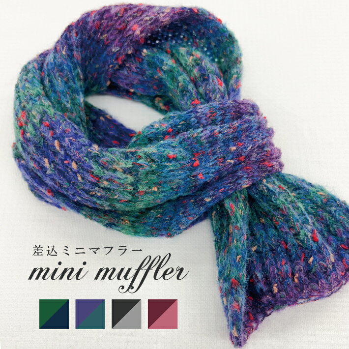 マフラー ミニマフラー グランジ調 グラデーション ショートマフラー おしゃれ 簡単 通すだけ 差し込み ふんわり 防寒 あったか レディース メンズ キッズ グリーン パープル グレー レッド 日本製 メール便