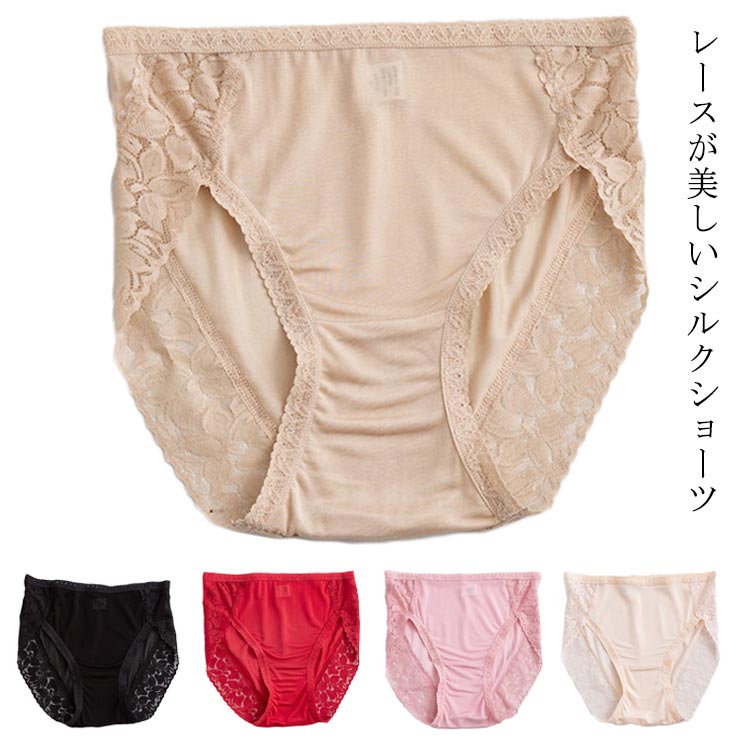 シルク ショーツ シルク100% レディース レース フラワーレース ハイウエスト シルクインナー ピンク ブラック レット ベージュ グレージュ M L XL