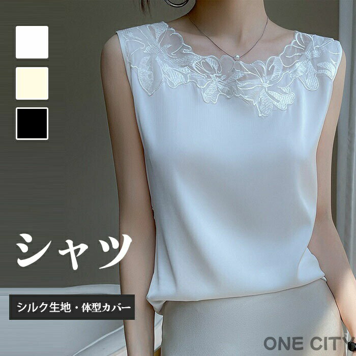 タンクトップ シルクタッチ シルクインナー シルクタンクトップ ノースリーブブラウス ブラウス インナー キャミソール レディース シクル生地 光沢感 薄手 刺繍 無地 透け感なし 夏 春 夏 秋 高級感 上品 冷感 涼しげ 送料無料