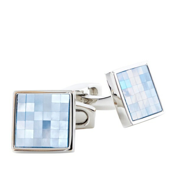 サイモンカーター SIMON CARTER イギリス製 CHEQUER Blue Mother of Pearl カフリンクス カフスボタン メンズ マザーオブパール 白蝶貝 ブルーxシルバー ギフト プレゼント | カフス 彼氏 男性 ボタン ブランド 結婚式 ファッション小物 旦那