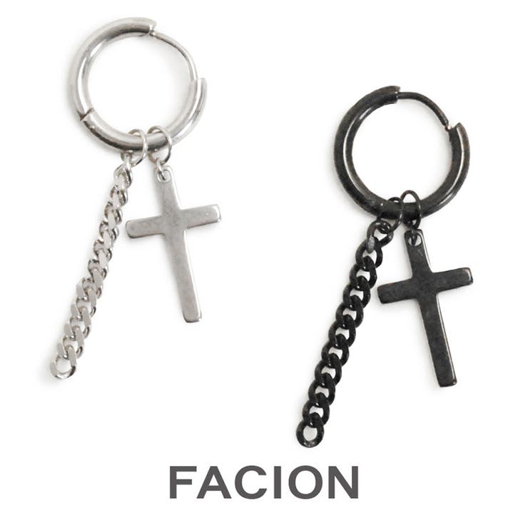 FACION 片耳クロスチェーンステンレスピアス フープ シルバー ブラック ゴシック メンズ レディース ペア 韓国 オルチャン K-POP プレゼント ギフト 女性 男性 ユニセックス アクセサリー