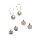 クリスタルボール、ローズクォーツ、そして貝パールのチャームが取り外し可能なシルバーフックピアス。場面に合わせて、チャームを着せ替えできるピアスです。 クリスタルボール ローズクォーツ(紅水晶) 貝パール(人工真珠)ホワイト8mm 925スターリングシルバーフック 全長:約2.3cm 8mm玉 重量:約2g(1個装着時)