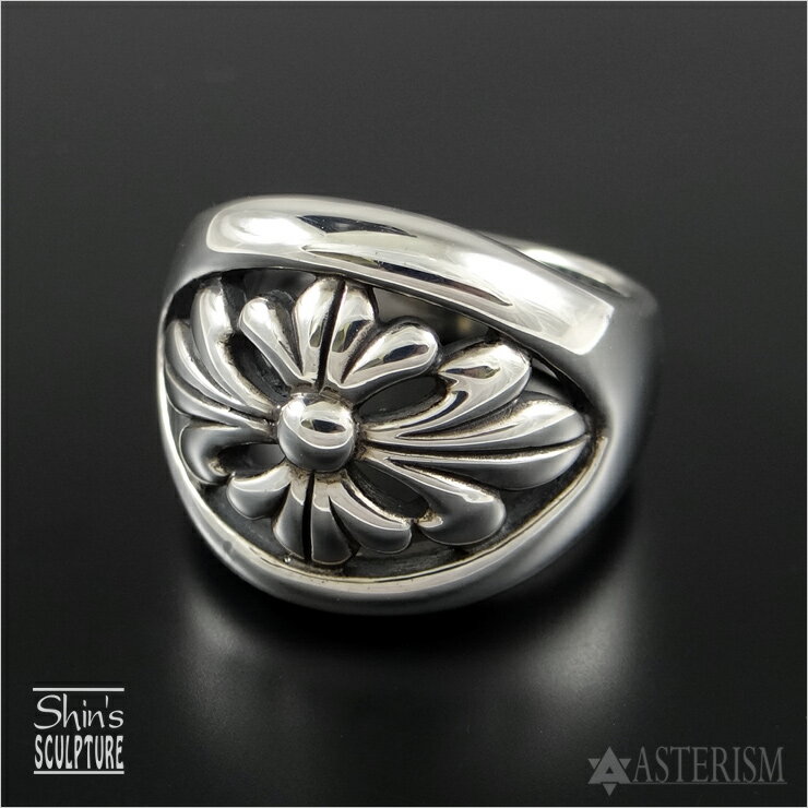 Shin's Sculpture(シンズ スカルプチャー)「Lily Cross Ring(リリー クロスリング)」SILVER 925 / 13〜29号【銀 メンズ レディース ペア アクセサリー ジュエリー 透かし 百合 手彫り Vバンド オーバル シルバー 925 プレゼント】R-3