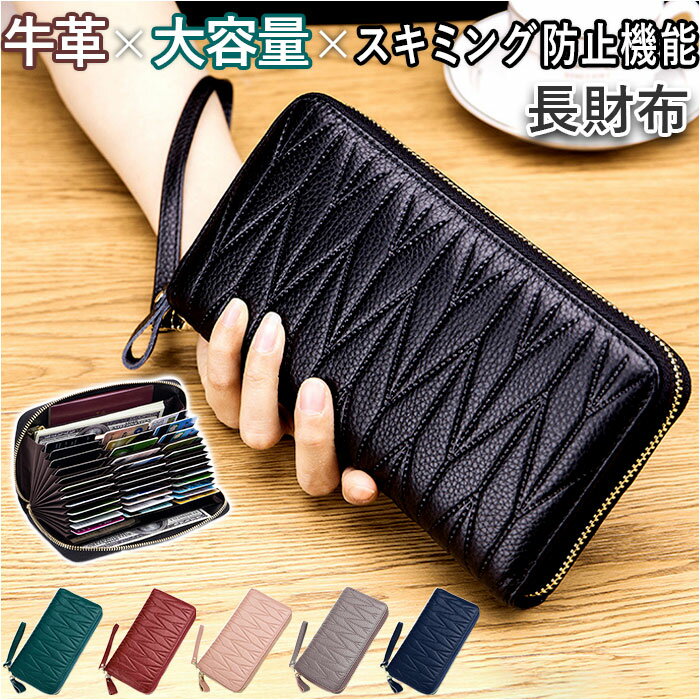 スキミング防止 長財布 レディース 通販 財布 長サイフ なが財布 カードケース パスポートケース スキミング 防止 カードがたくさん入る 革 レザー 本革 牛革 カード大容量 カード 36枚 おしゃれ シンプル ステッチ ポーチ バッグ 小物 ケース