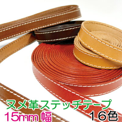[ 1m単位 ] ヌメ革生成ステッチテープ15mm幅 牛革本革コード1m単位 KSTK-15《 幅約15mm 厚み2mm 牛革 ヌメ革 テープ 持ち手 本革 バッグショルダー コード ショルダーストラップ 10m シンプル ステッチ KSTK15 》