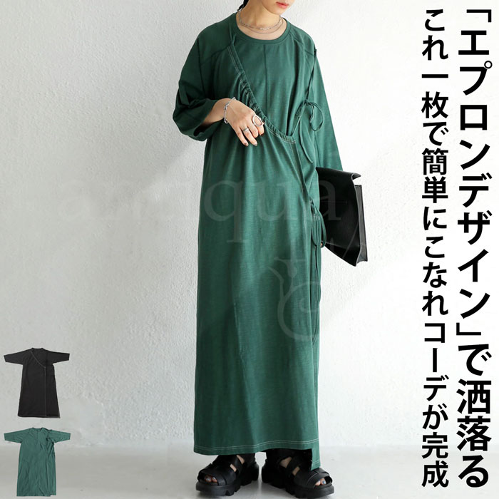 アウトレット 50%OFF エプロンワンピ ワンピース レディース ロング 7分袖・メール便不可