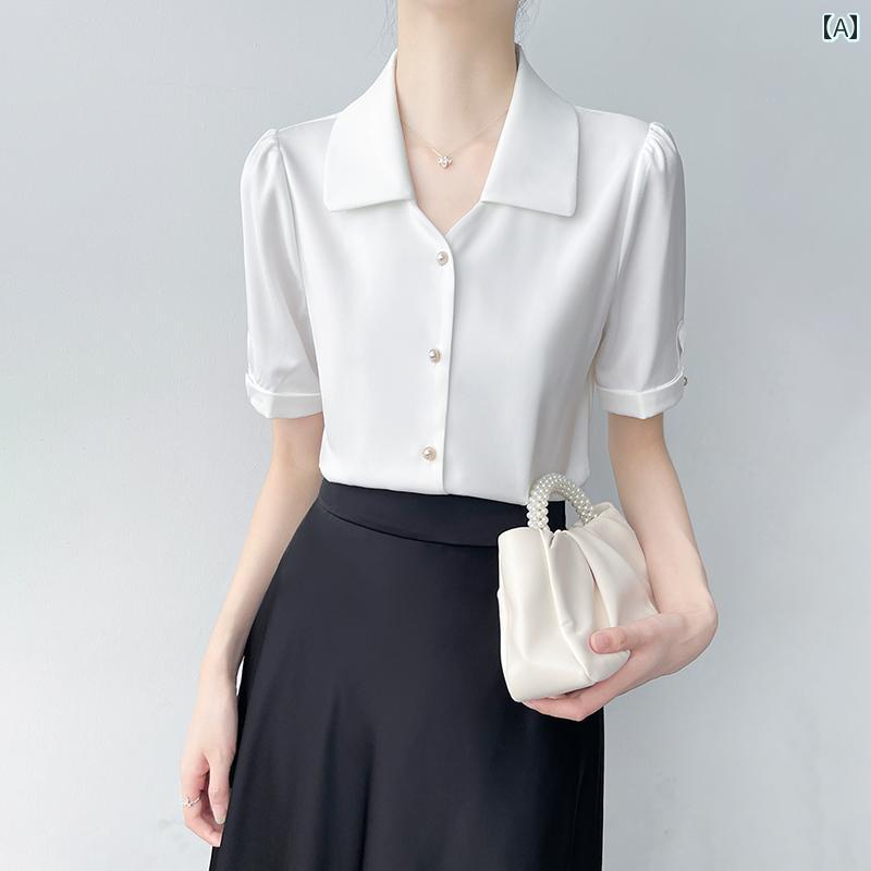 ブラウス シャツ シンプル Han Boya プロ 通勤 白 半袖 シャツ レディース 夏の シンプル パフスリーブ トップ