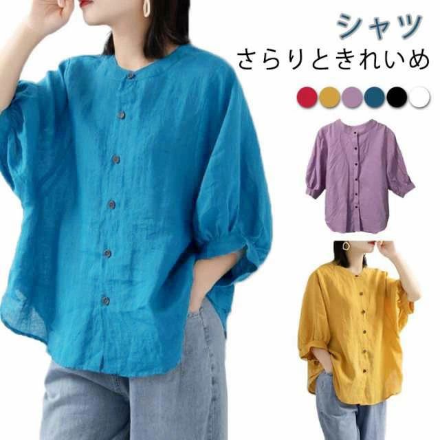 シャツ 長袖 スタンドカラー ブラウス レディース 長袖シャツ ギャザー フレンチスリーブ シャツ ギャザー 前開き 春物 チュニック パールボタン 無地 40代 大きいサイズ ゆったり 体型カバー シンプル パフスリーブ トップス 春 おしゃれ