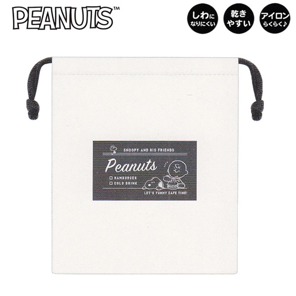 スヌーピー マチ付き巾着 シンプルロゴB ホワイト 6313 カミオジャパン オシャレ お弁当 ランチ 遠足 303631